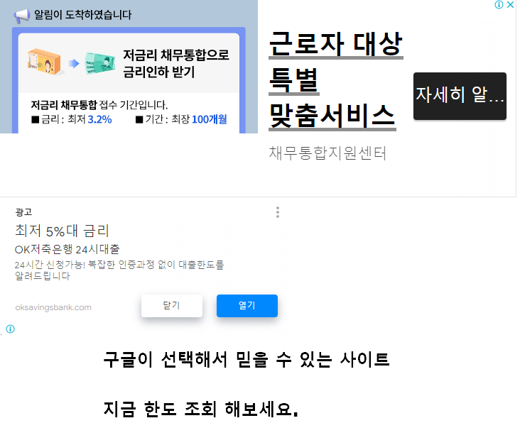 그외에 대출 진행시 빠르게 받고 싶으신가요? 마지막 방법을 소개해드릴게요. 여러분이 글을 내리면서 중간중간 스크롤을 내리면서 봤던 광고를 통해 대출을 진행하면 조금 더 대출을 받을 때 용이하다는 사실 알고 계시나요?
